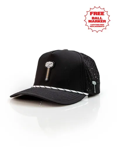Thor's Hammer Black - Perforated Rope Hat |